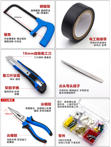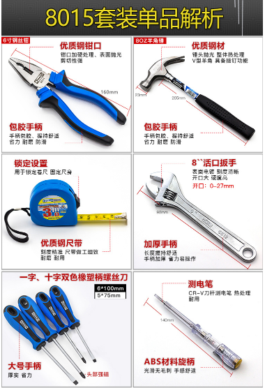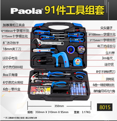 商品名称:保拉 PAOLA 91件套工具箱家用综合套装物业电工维修组套8015