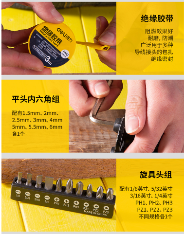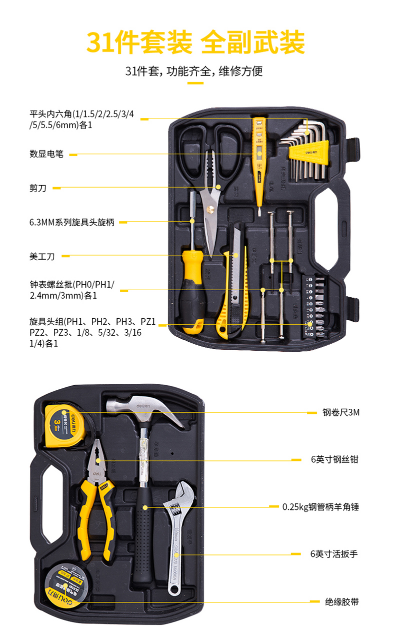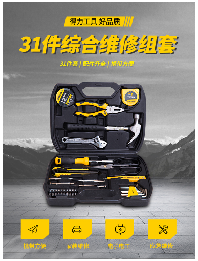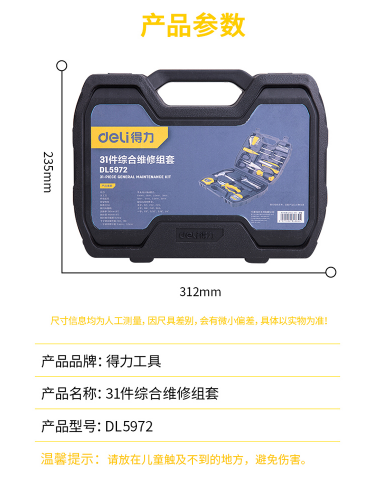 商品名称:得力 DELI DL5972 工具箱三十一件套