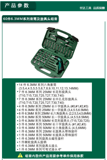 商品名称:世达 SATA 09324 60件 套筒及旋具头组套