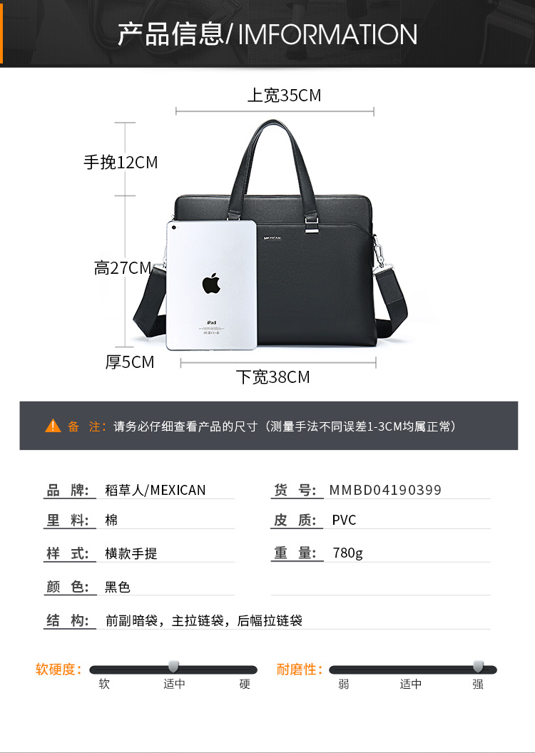 商品名称:稻草人 MEXICAN 公文包 14英寸 黑色