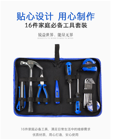 商品名称:锐能 RAYNER NR9004 家用维修工具套装 手动组合家用工具 五金工具组套 电工木工维修工具箱布包16件组套