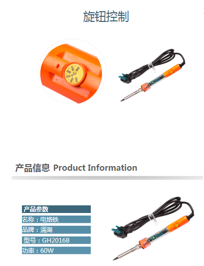 商品名称:滆湖 GEHU GH-2016B内热式60W温控电烙铁恒温可调无铅焊接调温恒温电烙铁接地线三角插座