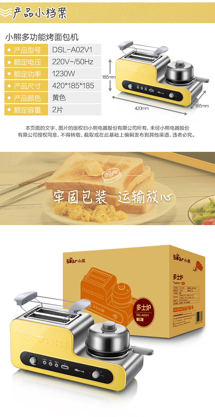 商品名称:小熊 BEAR 烤面包机全自动家用多士炉不锈钢吐司机早餐机DSL-A02V1