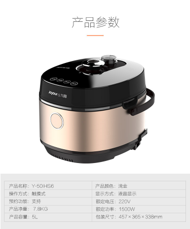 商品名称:九阳 JOYOUNG Y-50IHS6 电压力锅 5L