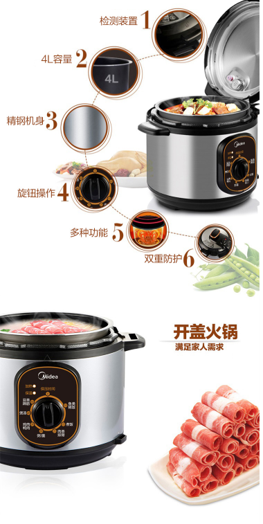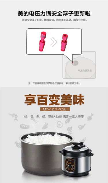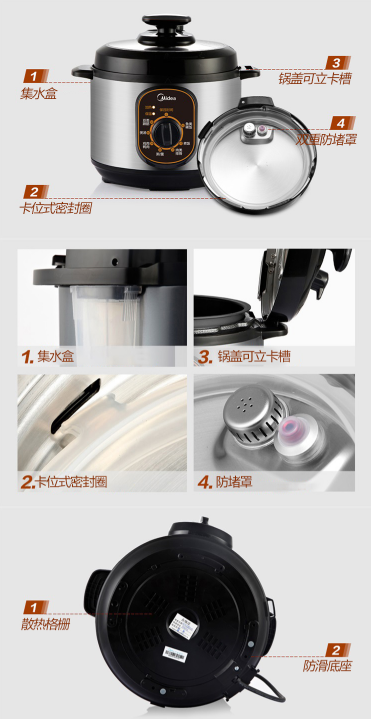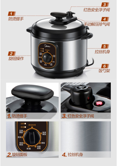 商品名称:美的 MIDEA 电压力锅4L 单胆高压锅 机械版 爆款家用压力锅 W12PCH402E