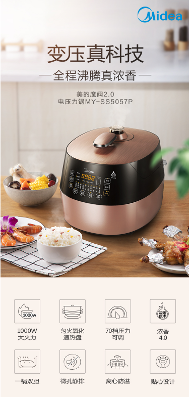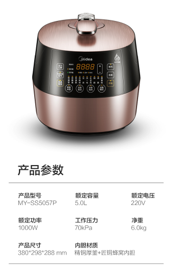 商品名称:美的 MIDEA MY-SS5057P 电压力锅 5L