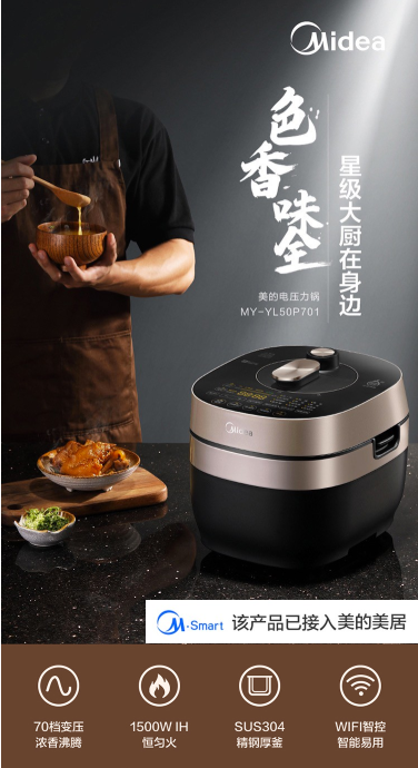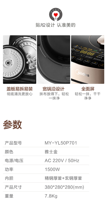 商品名称:美的 MIDEA MY-YL50P701 电压力锅 5L