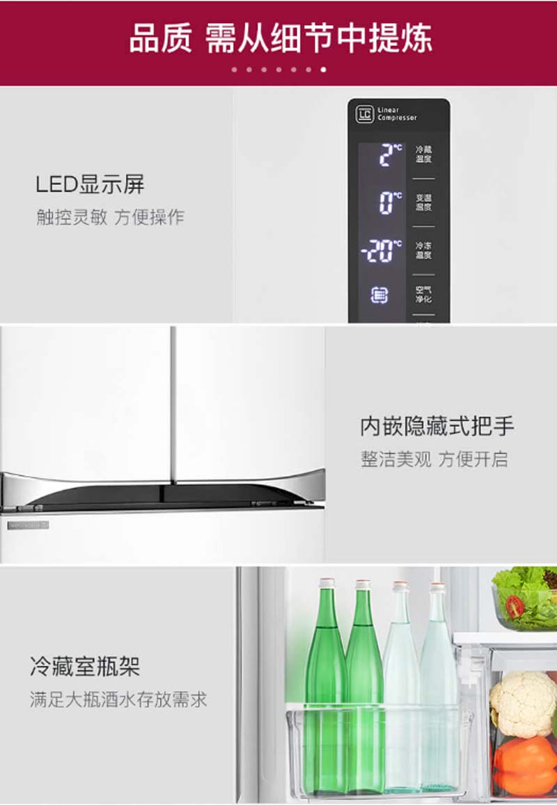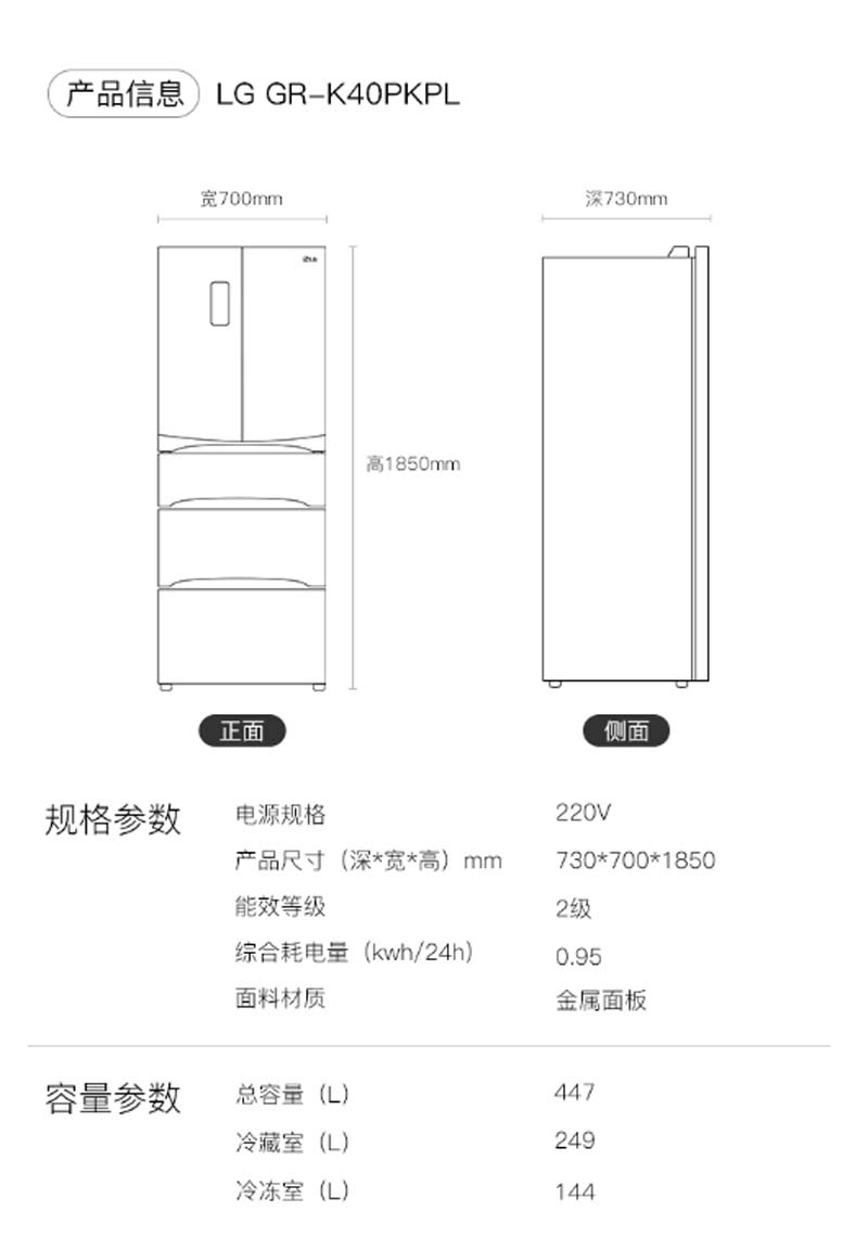 商品名称:LG GR-K40PKPL 447升 变频 电脑控温 冰箱