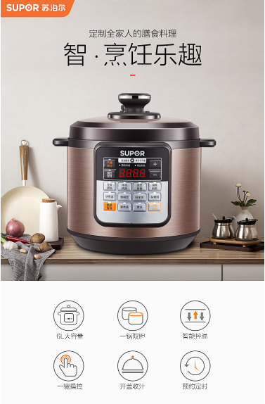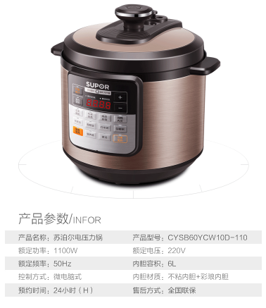 商品名称:苏泊尔 SUPOR 电压力锅 一锅双胆 一键减压 智能控温 CYSB60YCW10D-110 6L高压锅