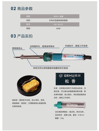 商品名称:滆湖 GEHU GH-2015T外热式恒温电烙铁套装60W