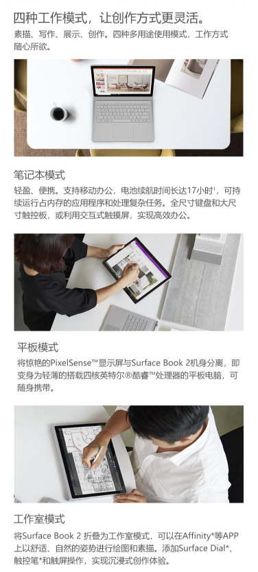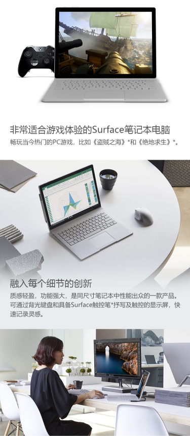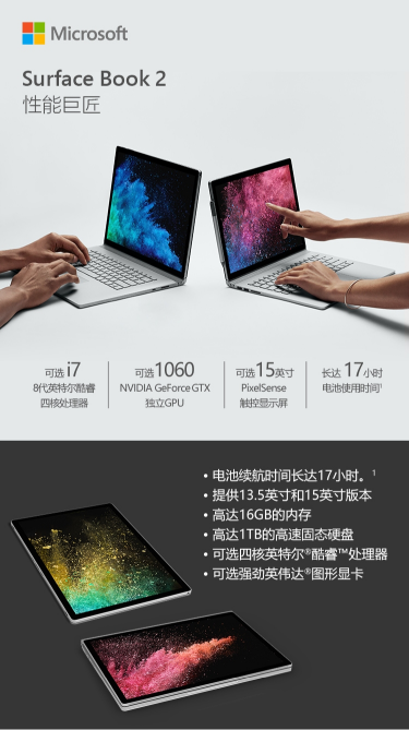 微软 MICROSOFT SURFACE BOOK 2 15英寸(INTEL I7 16G内存 512G存储)银色 平板电脑