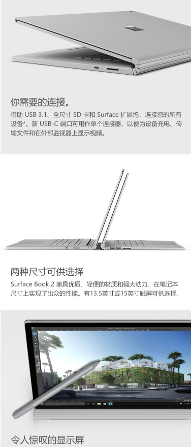 商品名称:微软 MICROSOFT SURFACE BOOK 2 15英寸(INTEL I7 16G内存 512G存储)银色 平板电脑