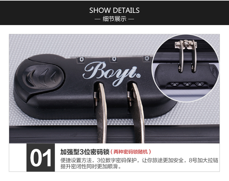 商品名称:博兿 万向轮拉杆箱24英寸行李箱 黑色 BY-72002