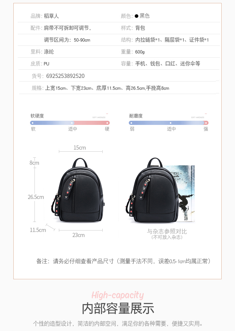 商品名称:稻草人 MEXICAN MMN60784L-05 双肩包 女款 黑色