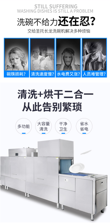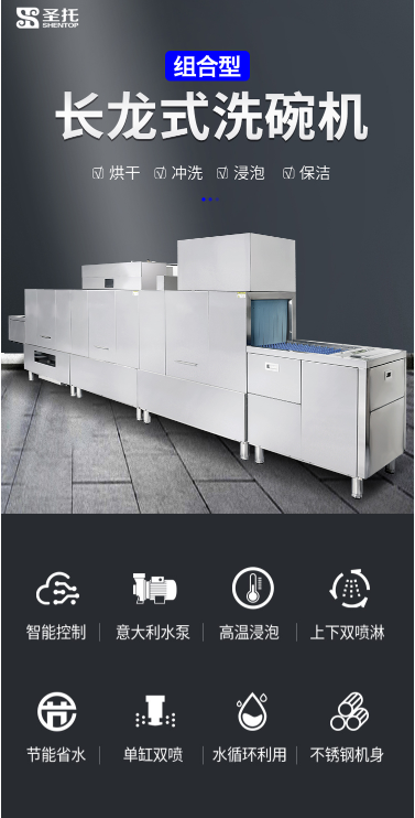 商品名称:圣托 SHENTOP STW-L28 大型长龙式 单杠双喷淋履带式洗碟机