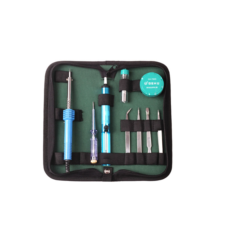 滆湖 GEHU GH-0919件套电烙铁套装40W电烙铁焊锡丝松香测电笔吸锡器镊子 尖头弯头扁头反向
