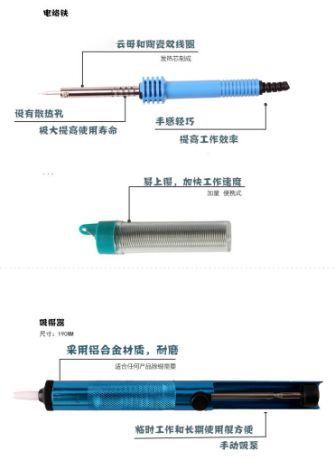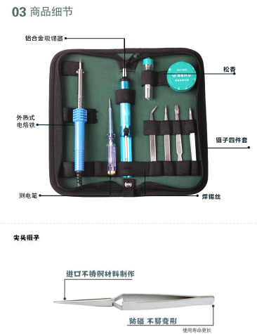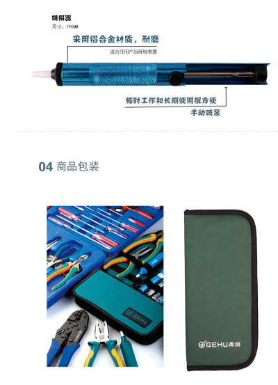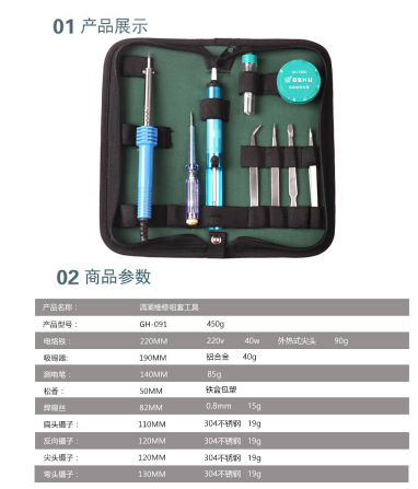 商品名称:滆湖 GEHU GH-0919件套电烙铁套装40W电烙铁焊锡丝松香测电笔吸锡器镊子 尖头弯头扁头反向
