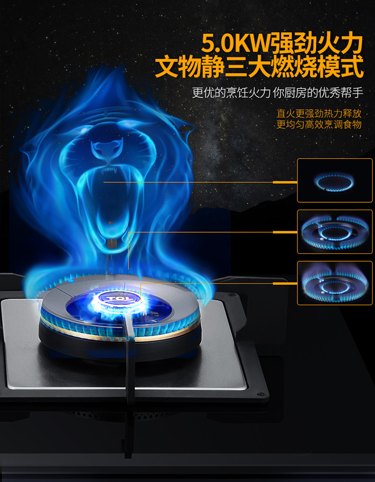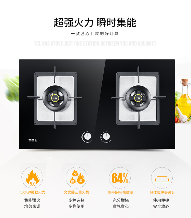 商品名称:TCL 燃气灶 钢化玻璃面板 煤气灶燃气灶 燃气灶双灶 台嵌两用 (液化气)JZY-5601B