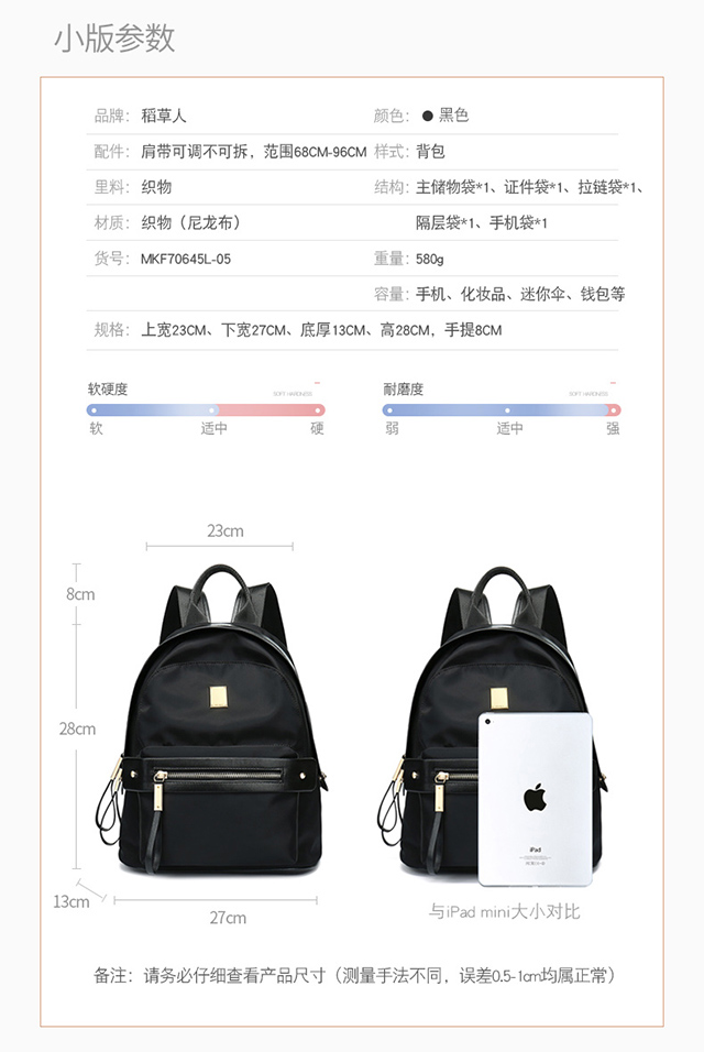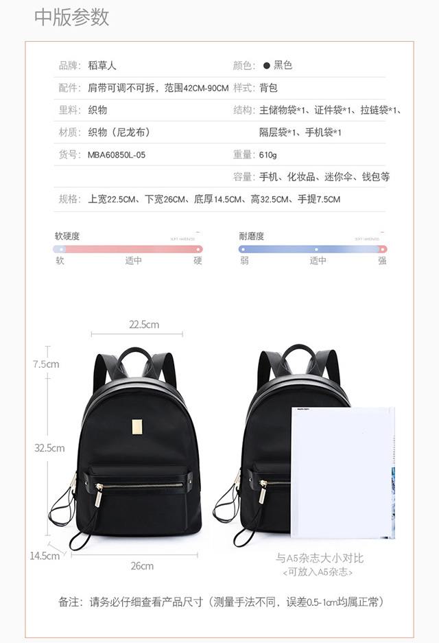 商品名称:稻草人 MEXICAN MKF60850L-05 双肩背包 中号 黑色