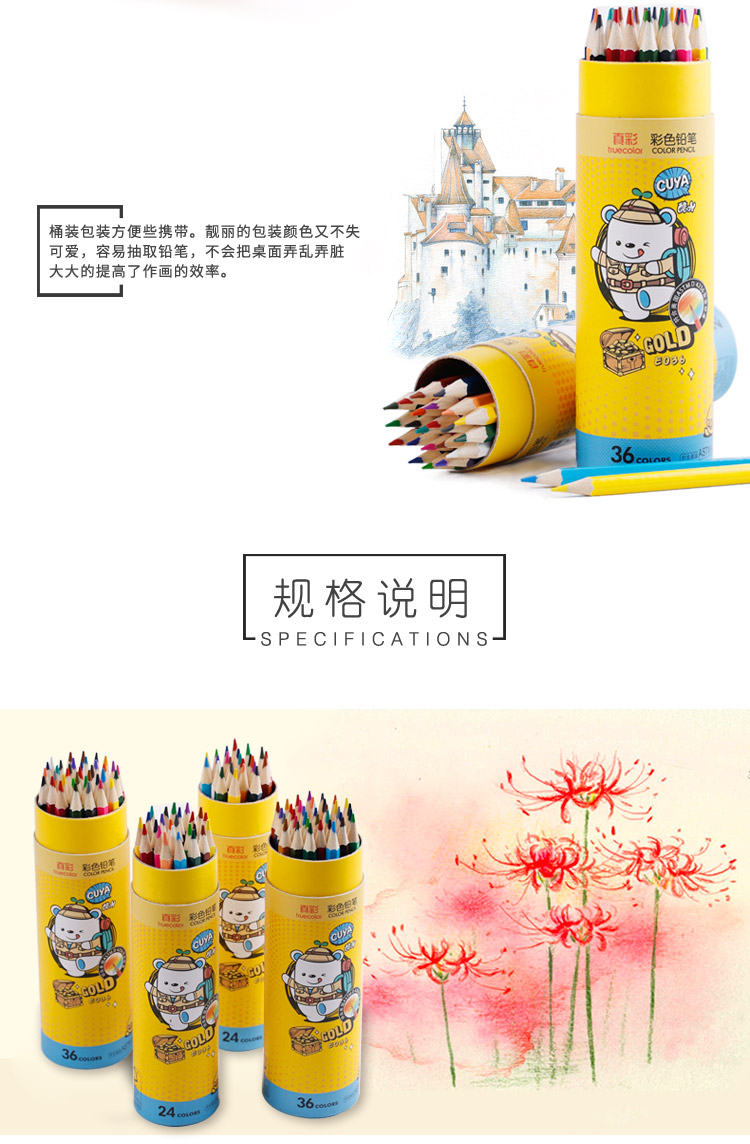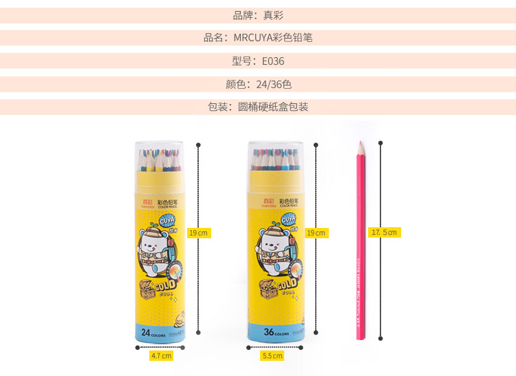 商品名称:真彩 TRUECOLOR CK-036 彩色铅笔 24色/盒 2盒装