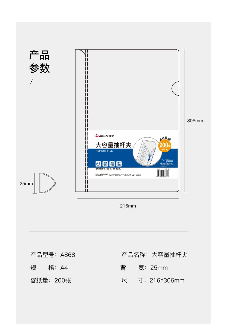 商品名称:齐心 抽杆夹 A4 10mm 10只/包