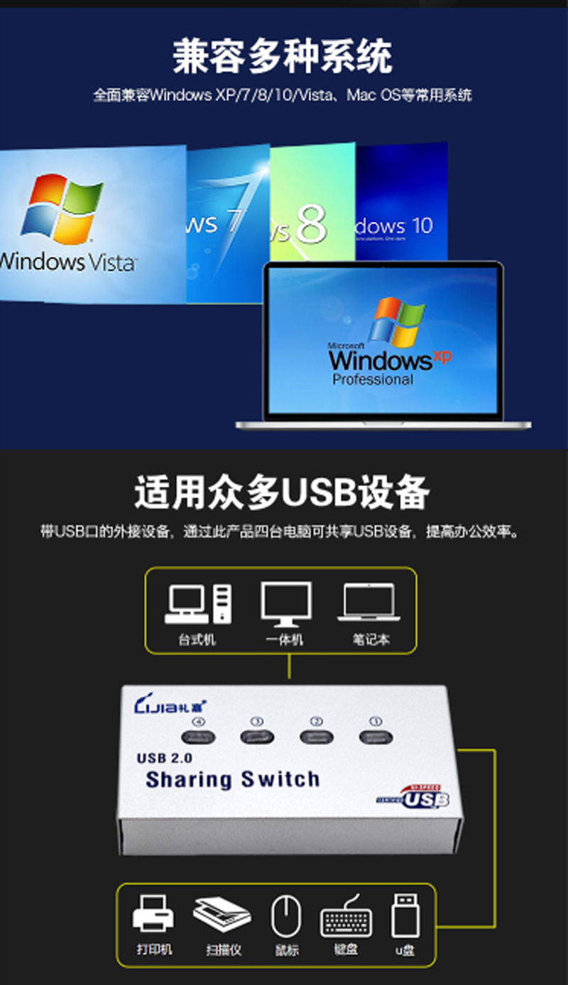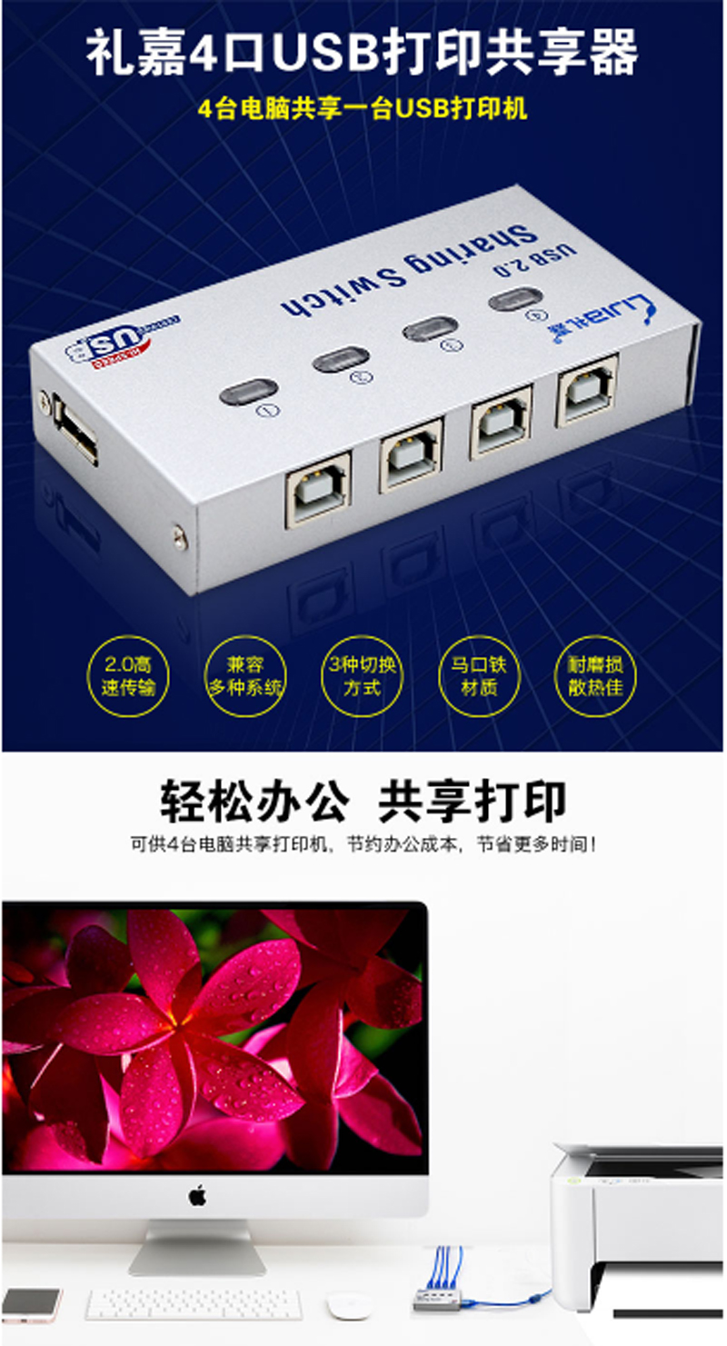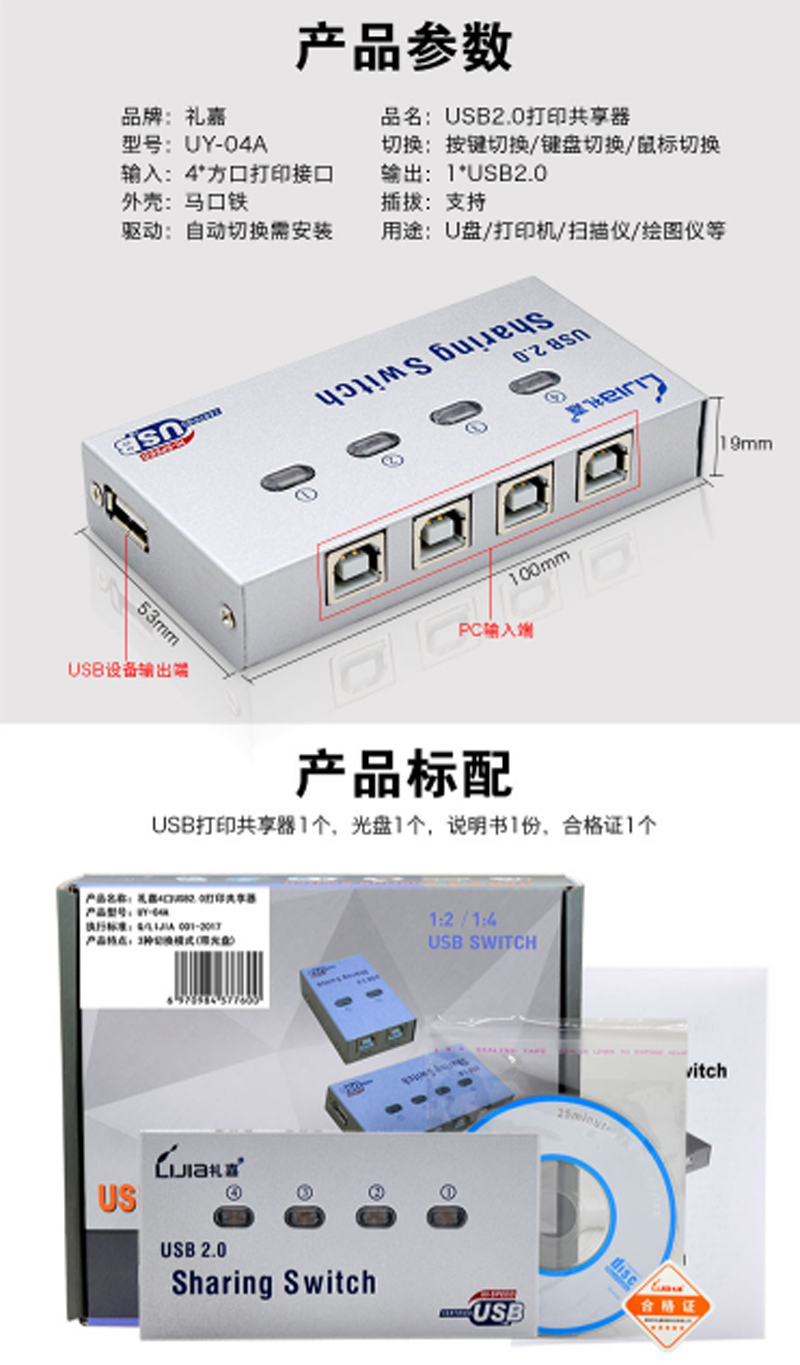 商品名称:☆礼嘉 UY-04A USB4口打印共享器 不配线