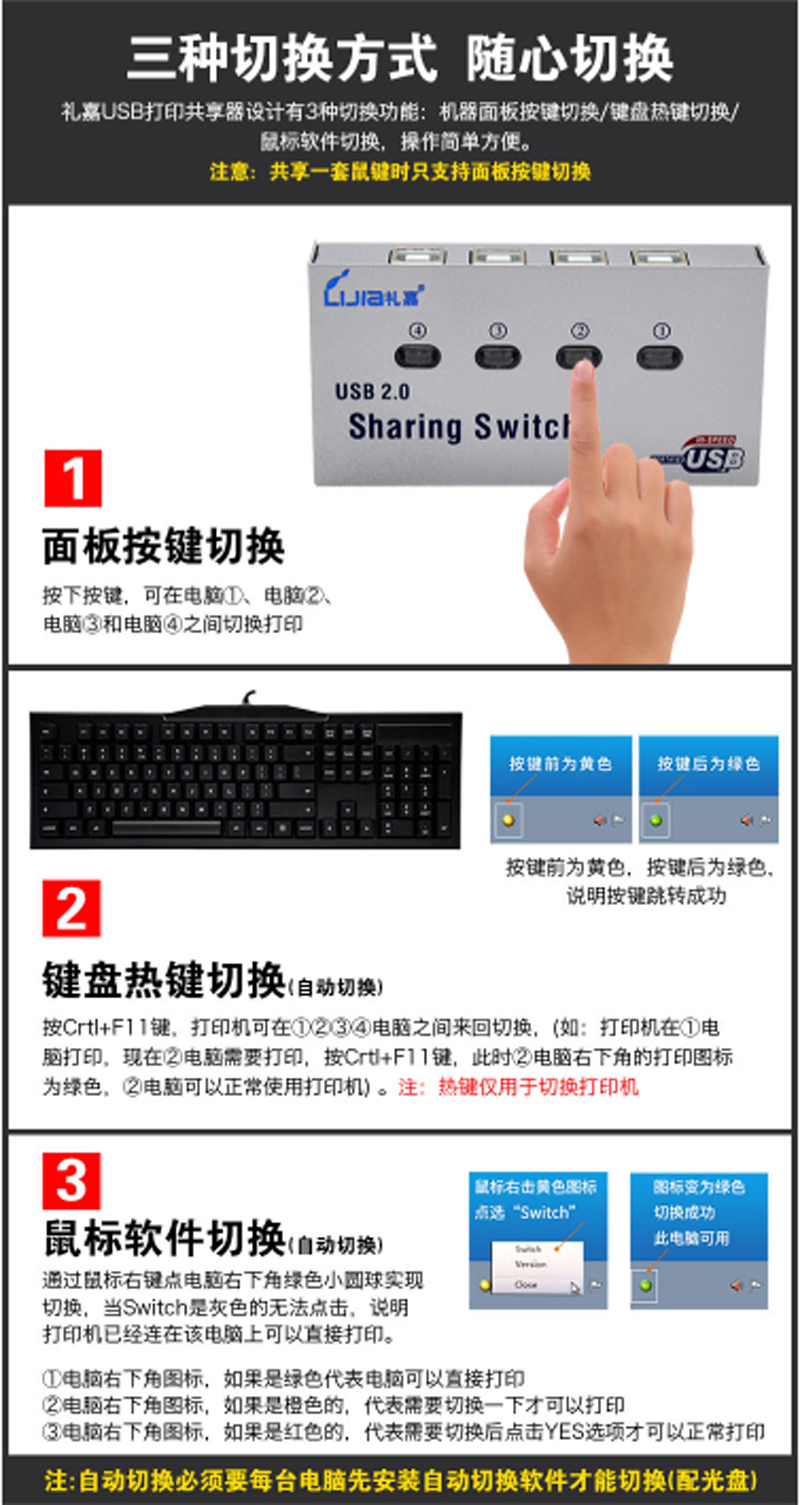 ☆礼嘉 UY-04A USB4口打印共享器 不配线