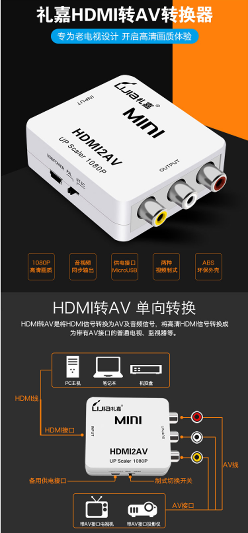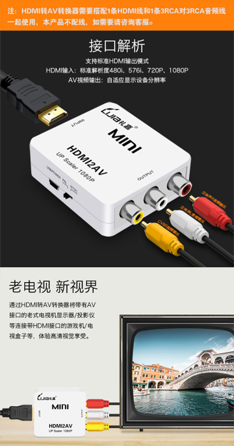 商品名称:☆礼嘉 LIJIA HDV-M988 HDMI转AV转换器 HDMI转AV转接线