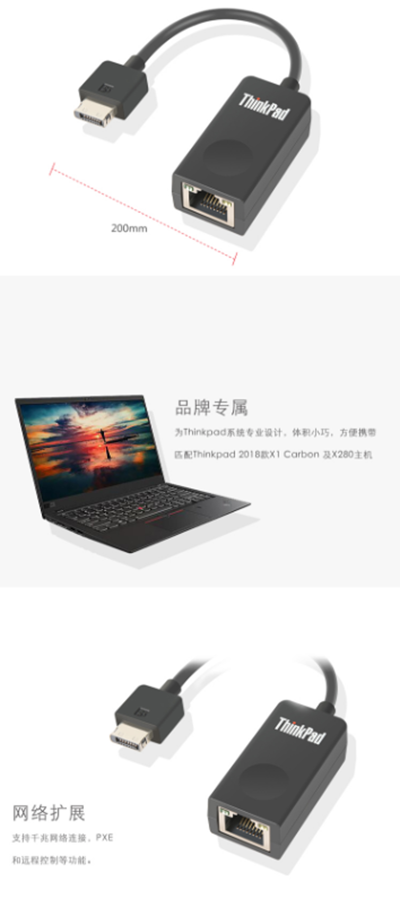 商品名称:☆联想 THINKPAD 2018款X1 X280 X390转接线 网卡线网口4X90Q84427
