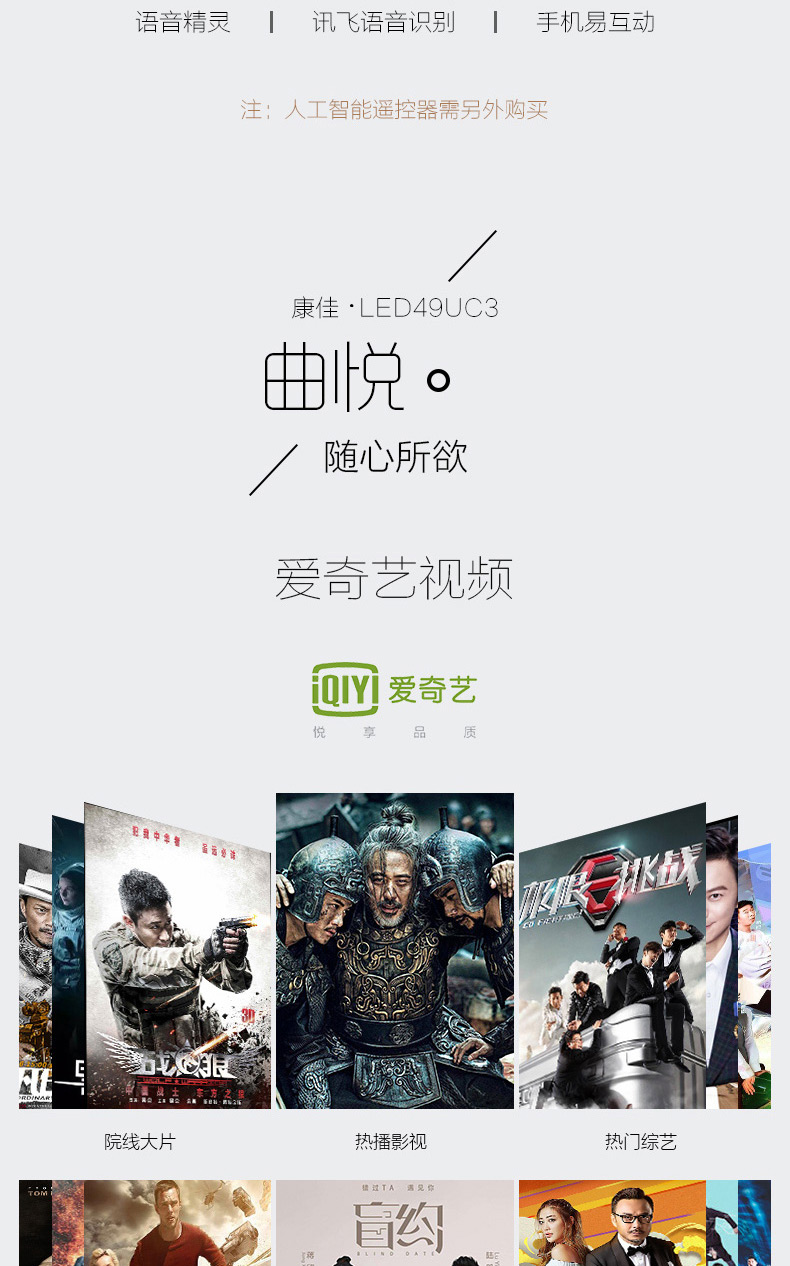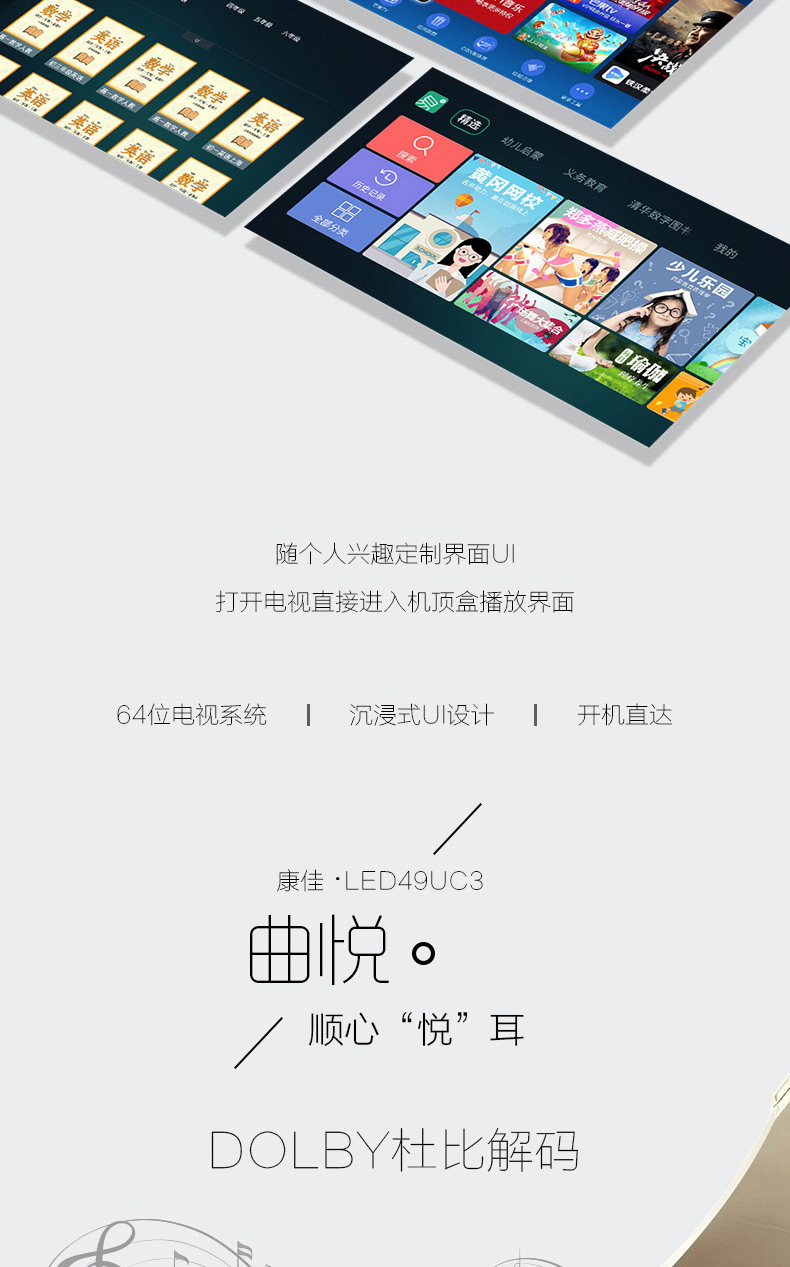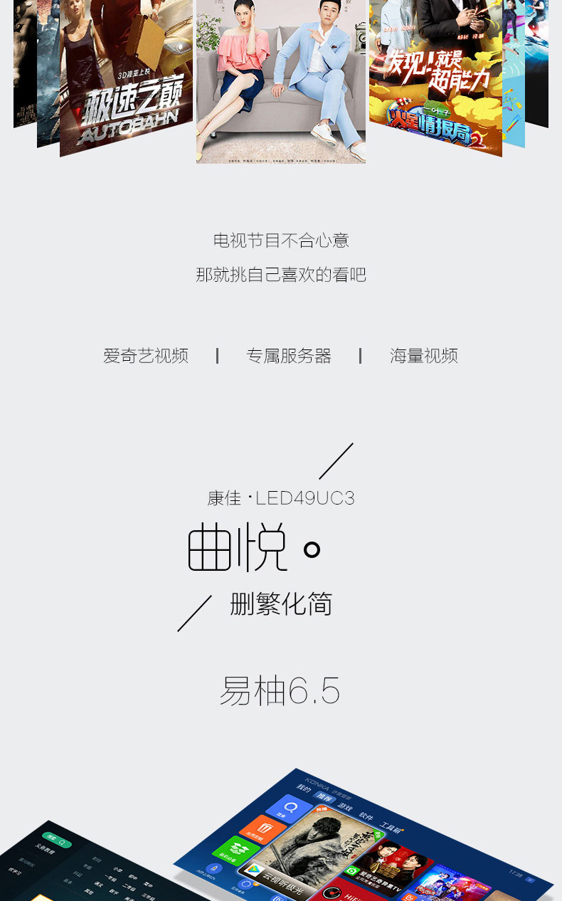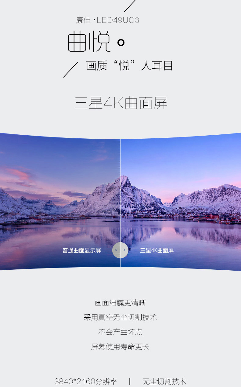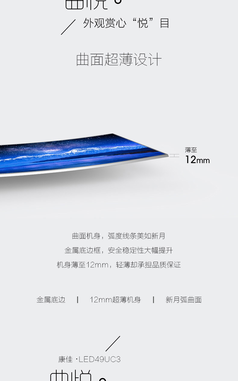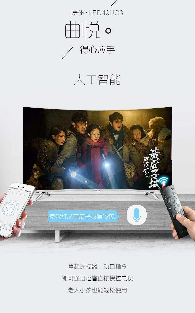 商品名称:Konka/康佳 49吋4K超清智能曲面平板led液晶电视机 LED49UC3