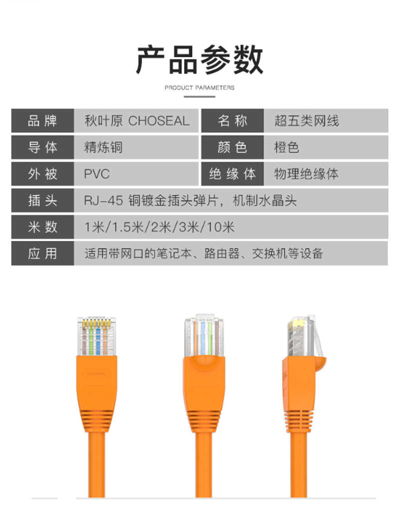 商品名称:☆秋叶原 CHOSEAL 高速超五类网线 网络线连接线 带水晶头网络跳线 5米 QS5401CT5