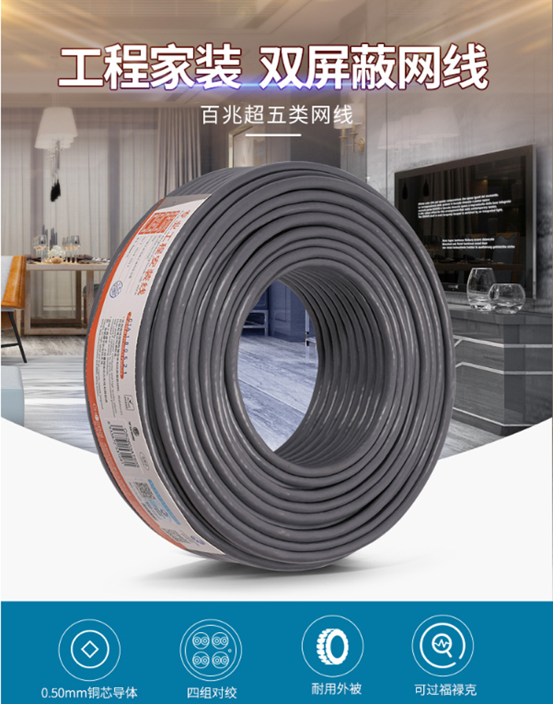 商品名称:☆秋叶原 CHOSEAL 超五类网线 双屏蔽 安全传输网线 灰 50米 QS2603T50