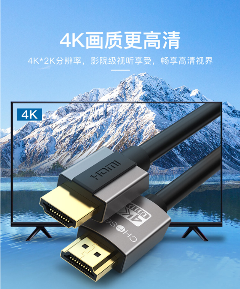 秋叶原(CHOSEAL)HDMI线2.1版8k数字高清线4k@120Hz兼容HDMI2.0笔记本电视显示器投影仪 3米 QS8210T3 单位:条