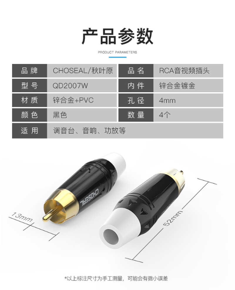 商品名称:☆秋叶原 CHOSEAL QD2007W RCA音视频插头 莲花头RCA 4支装