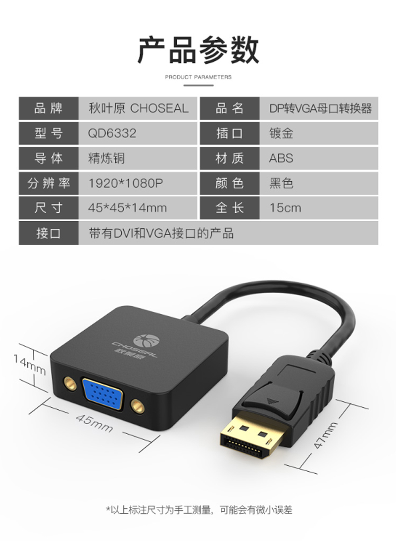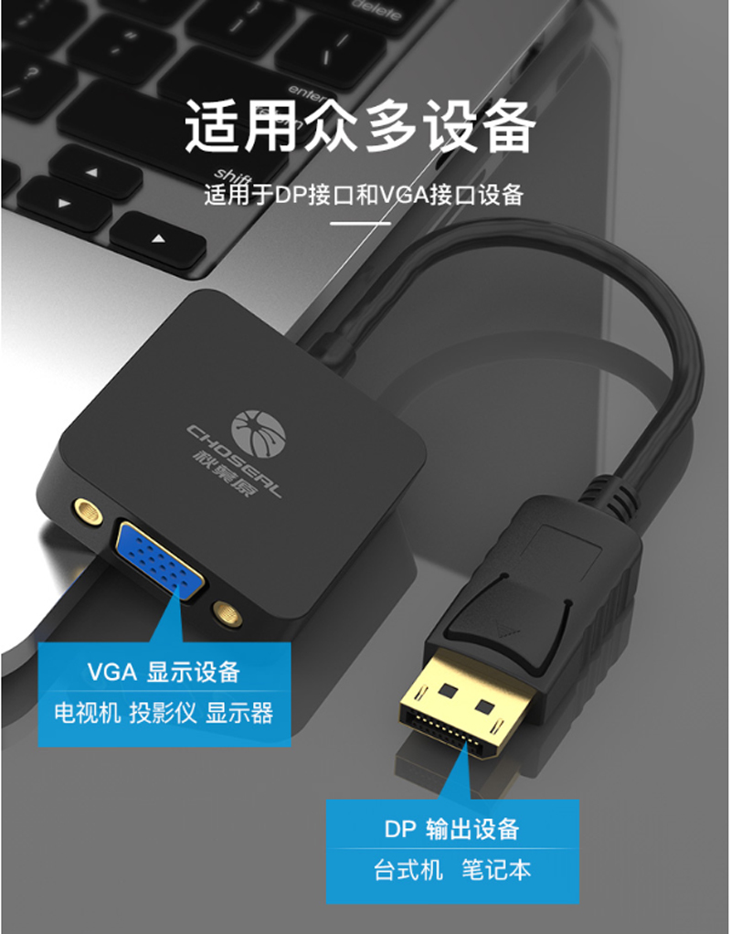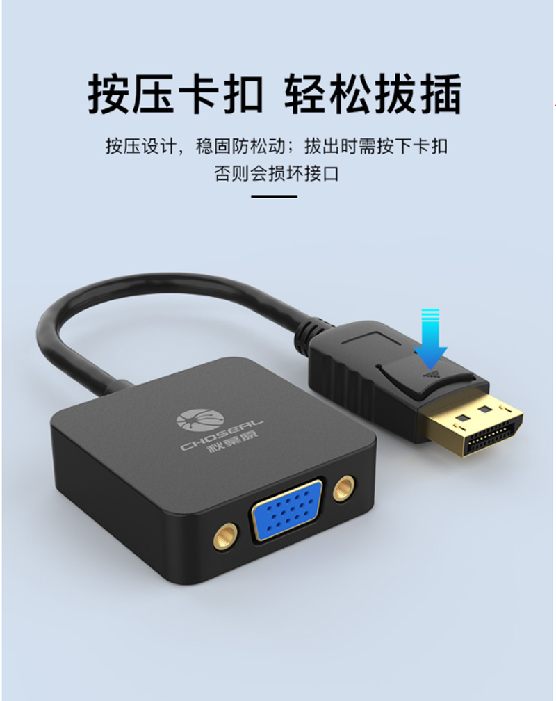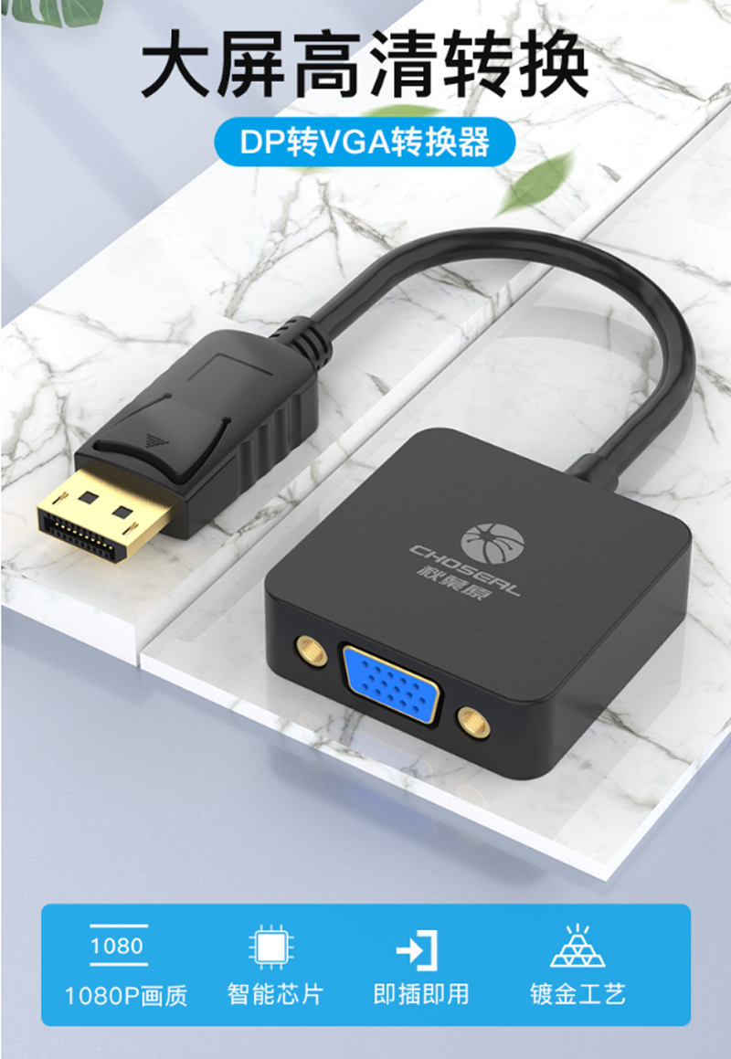 商品名称:☆秋叶原 CHOSEAL DP转VGA高清转接线 DP接口笔记本电脑接显示器投影QD6332