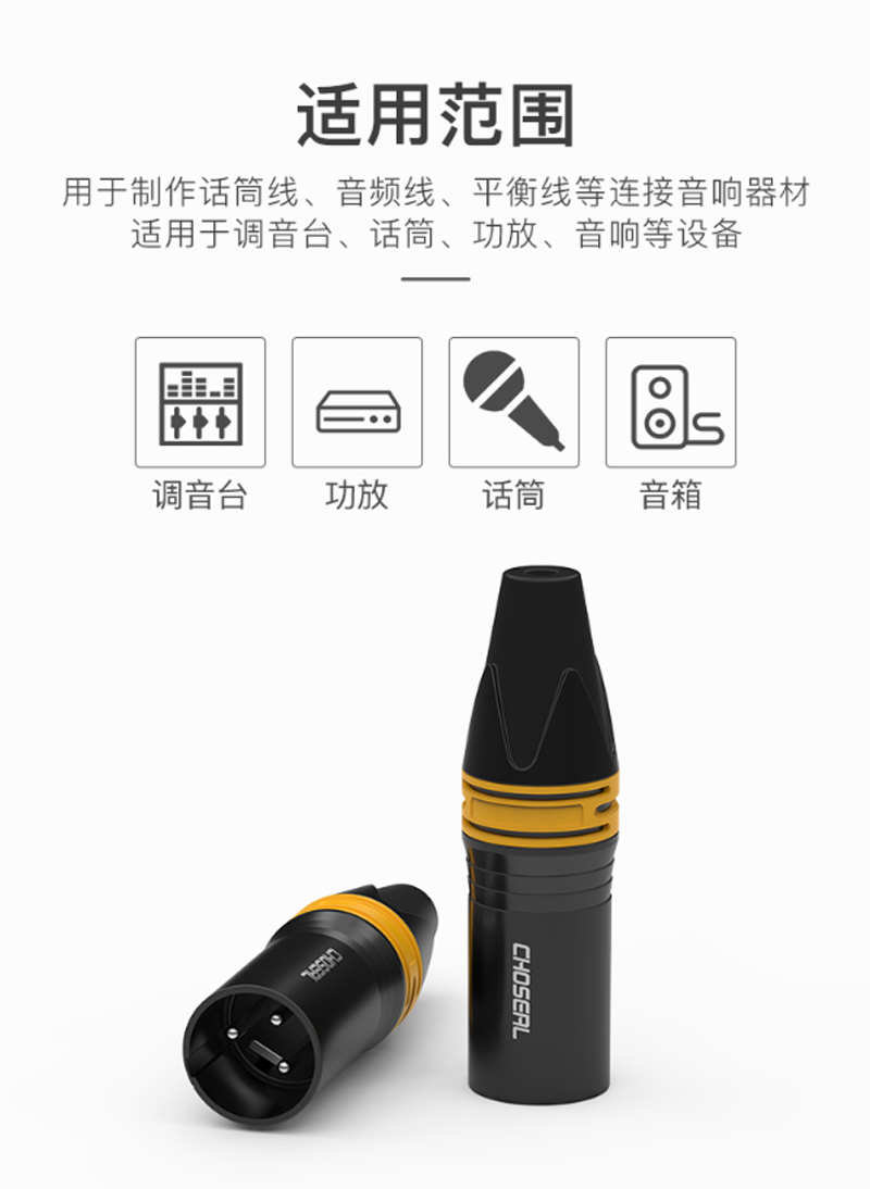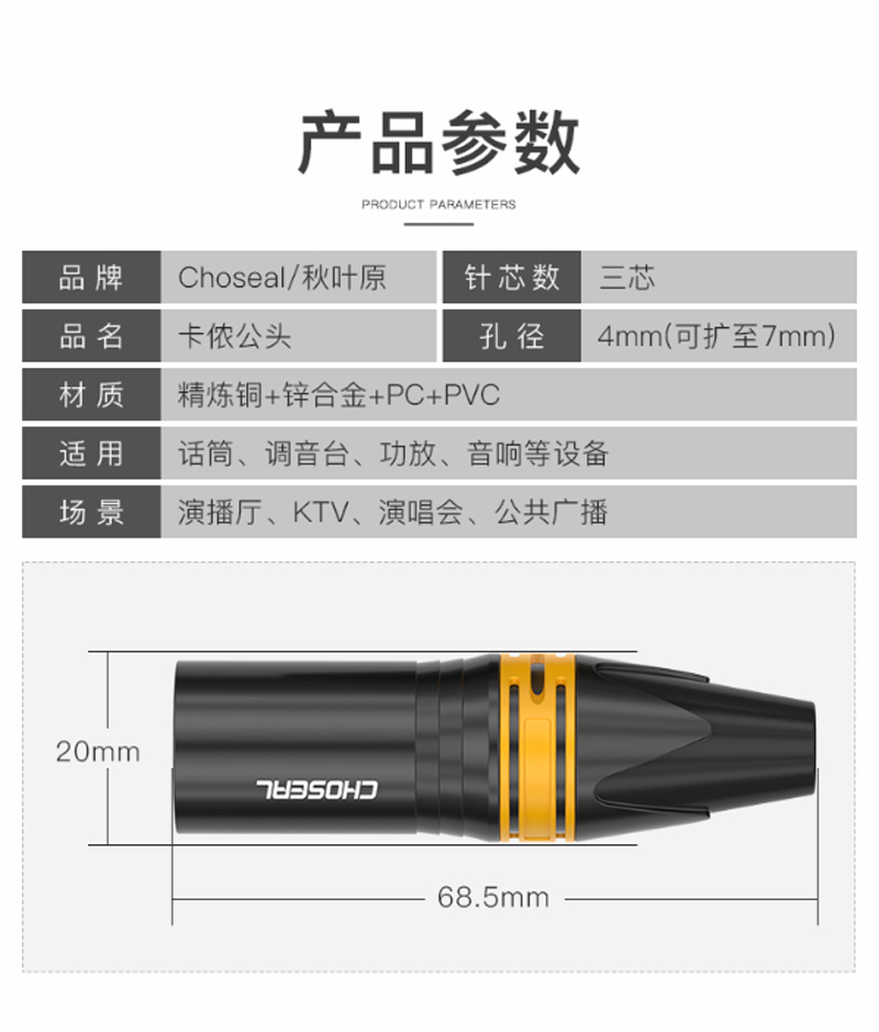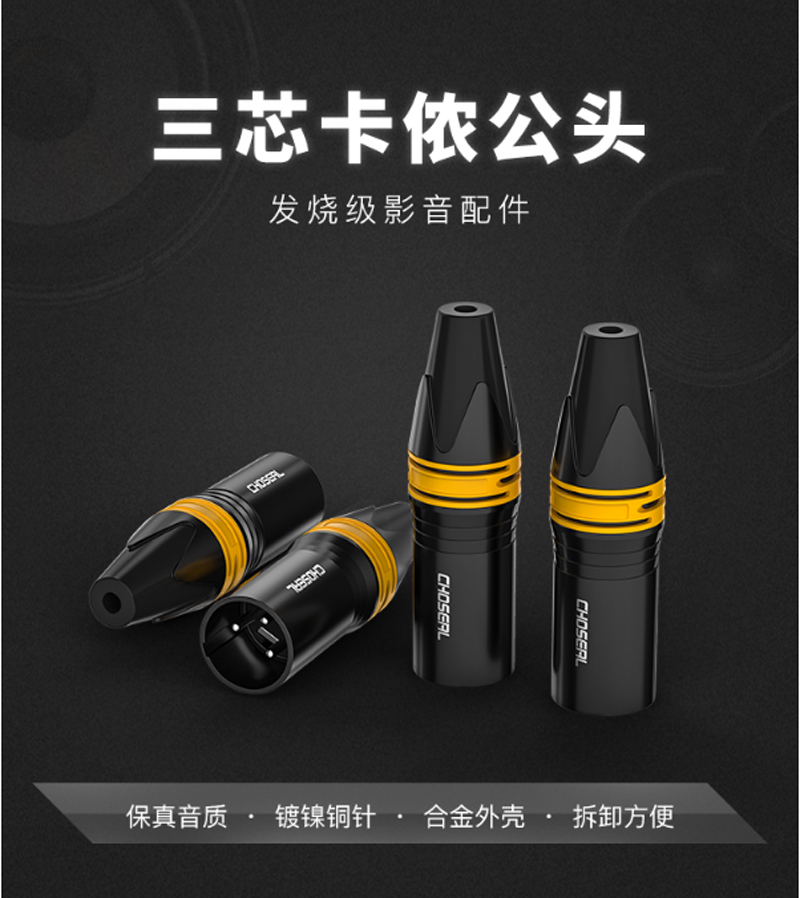 商品名称:☆秋叶原 CHOSEAL 卡侬公头 高保真音频接头 麦克风插接件 KTV音响工程配件 卡侬公 四个 QD2003B