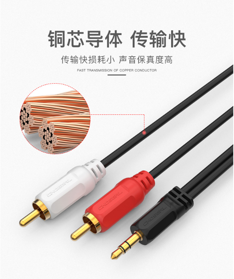 ☆秋叶原 CHOSEAL QS3002T1 3.5MM 一分二莲花头 音频线 1米