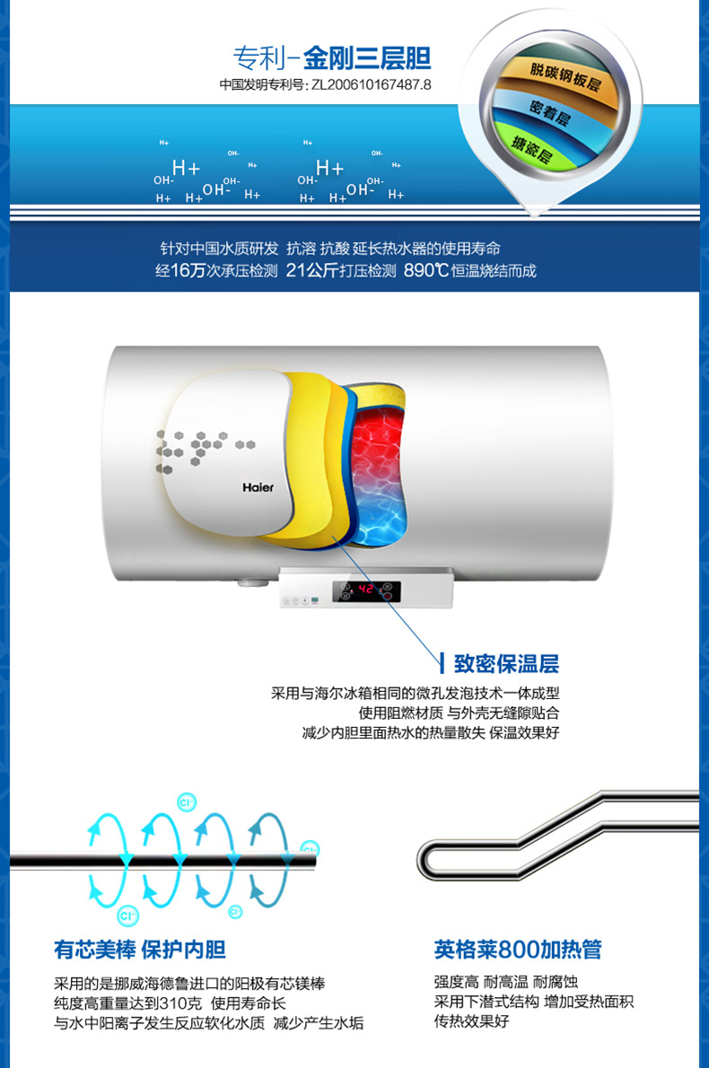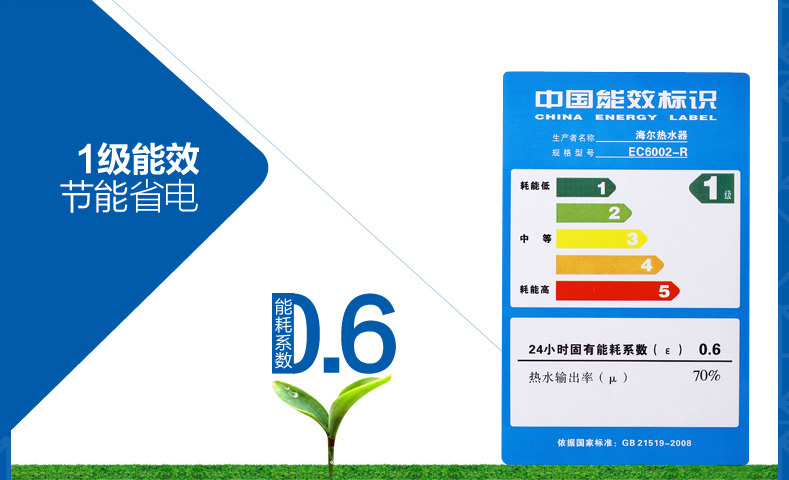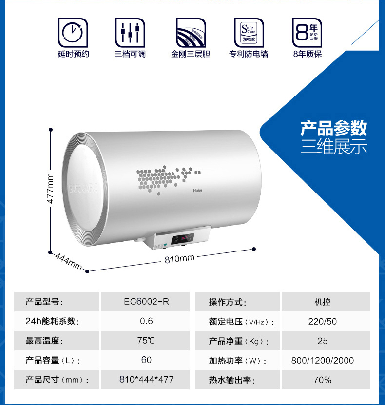 商品名称:海尔 60升储水式电热水器 EC6002-R