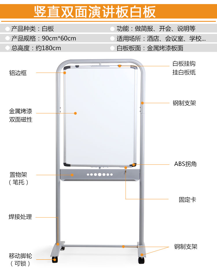 商品名称:☆AUCS 1360902 双面支架挂纸移动白板 600×900MM