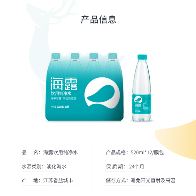 商品名称:☆海露 OCEAN AQUA 海洋天然饮用纯净水 520ML*12瓶(新能源产品)