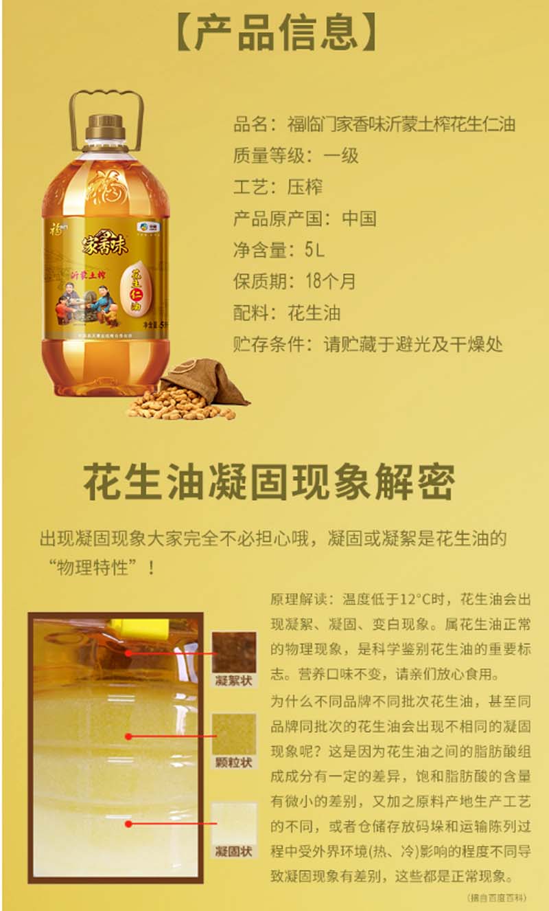 商品名称:福临门 家香味 沂蒙土榨 花生仁油5L(单位:桶)