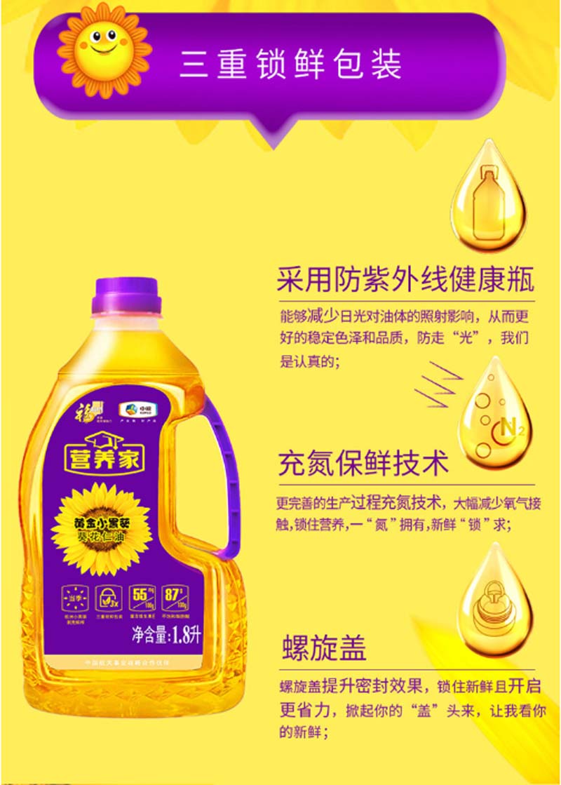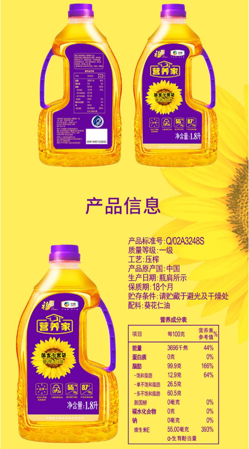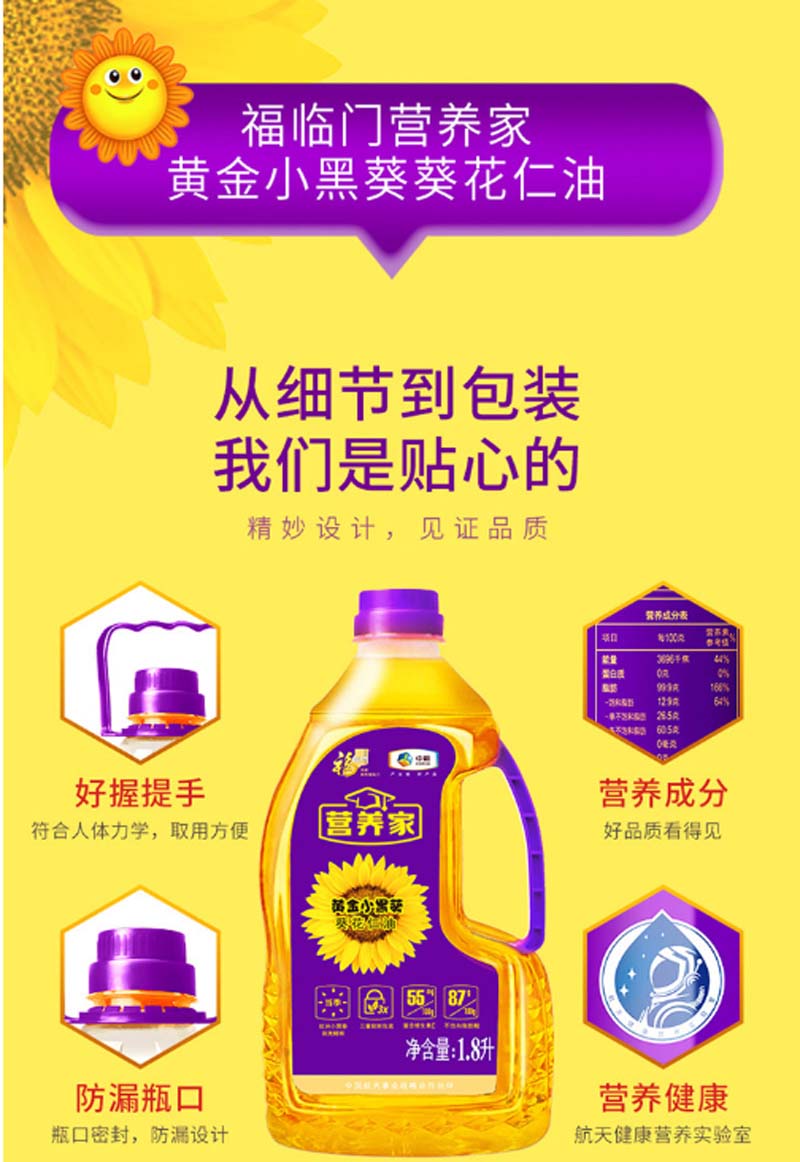 福临门-营养家黄金小黑葵葵花仁油-1.8L-单位:瓶