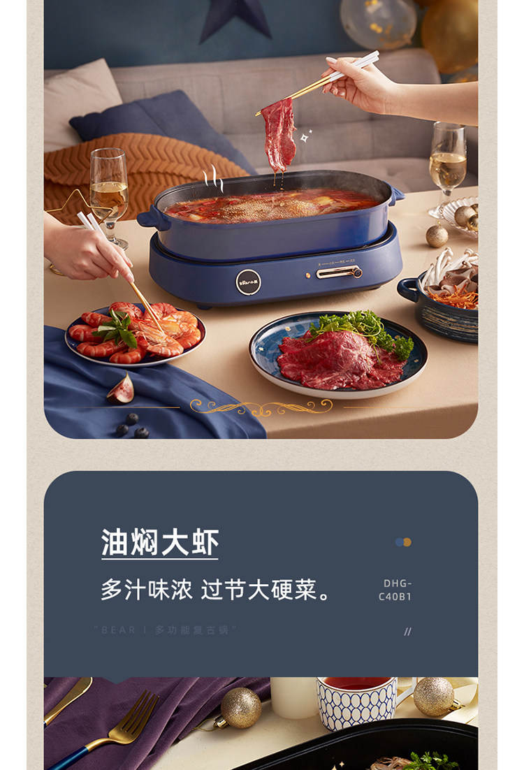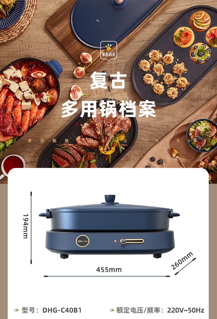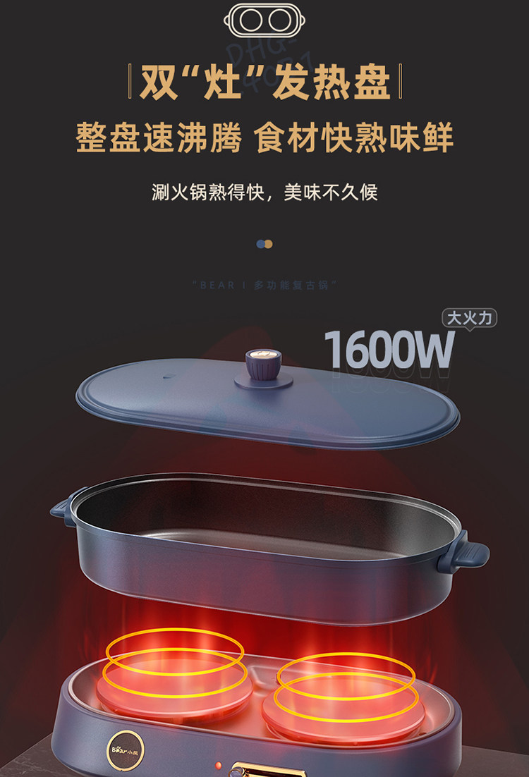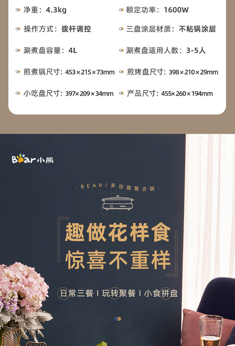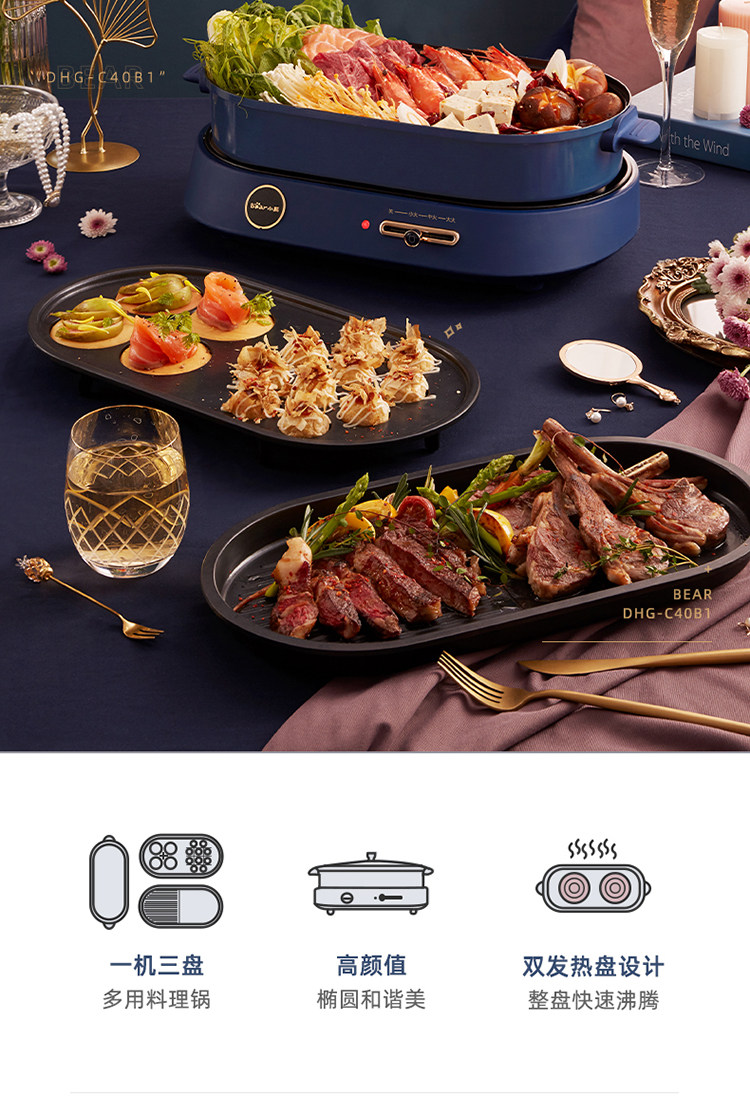 商品名称:小熊(bear) DHG-C40B1 煎烤涮一体多功能料理锅火锅4L(单位:件)
