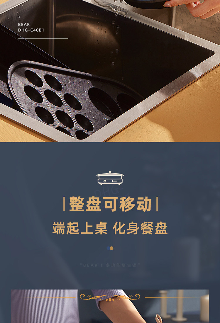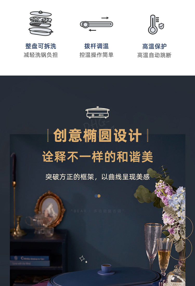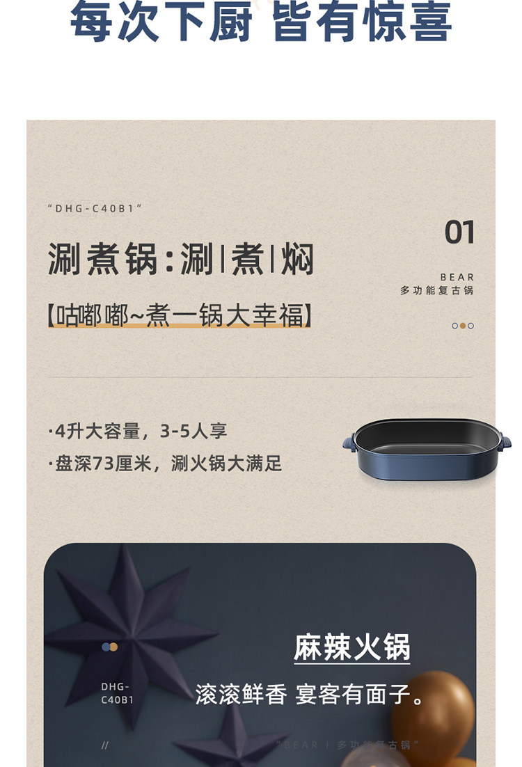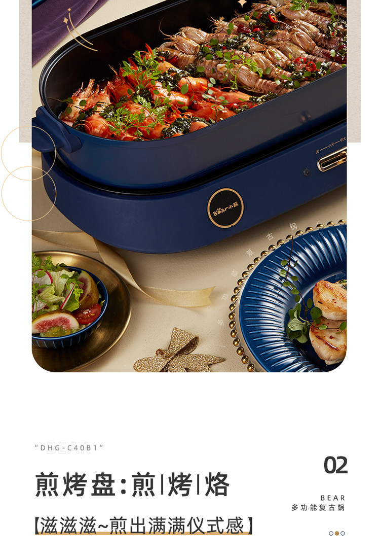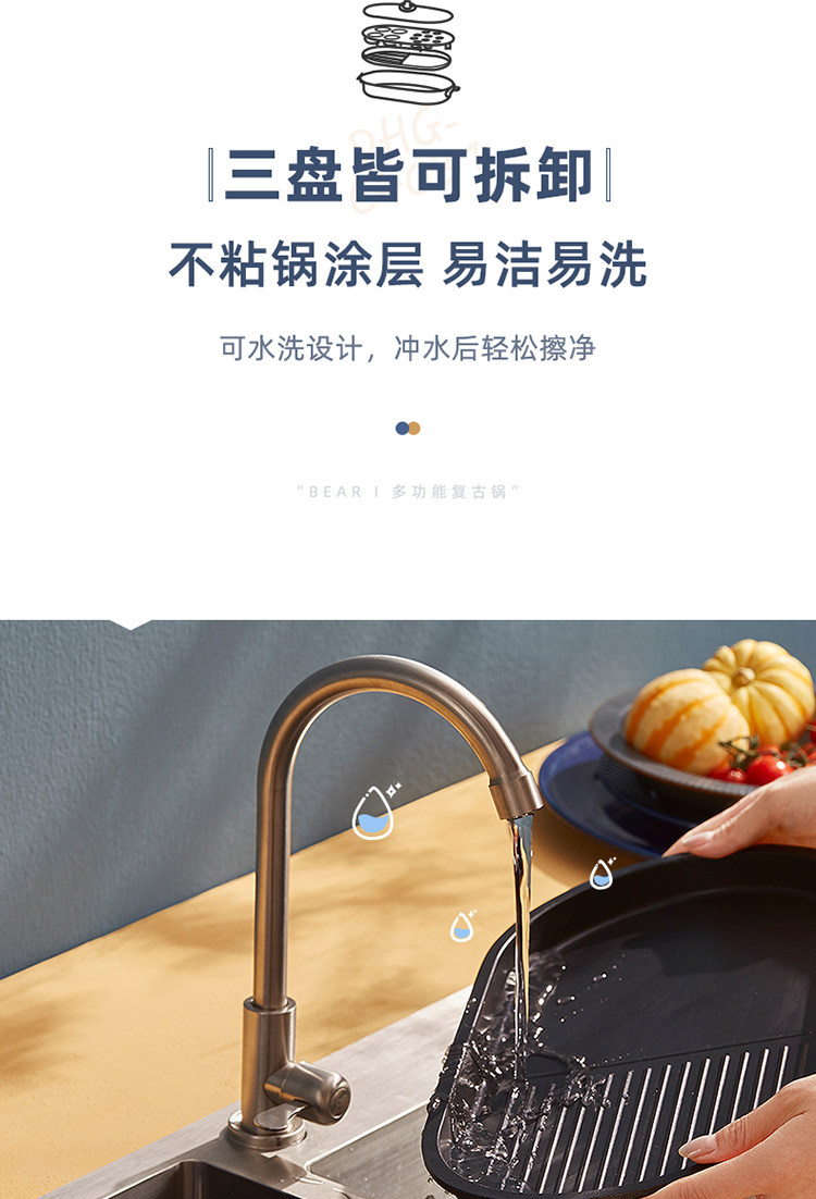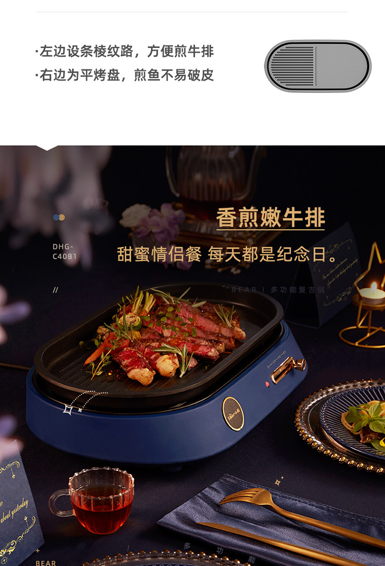 商品名称:小熊(bear) DHG-C40B1 煎烤涮一体多功能料理锅火锅4L(单位:件)