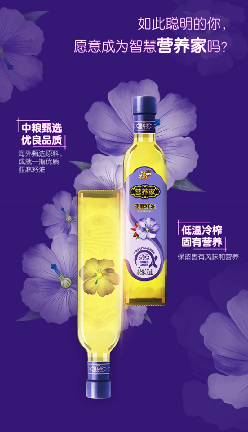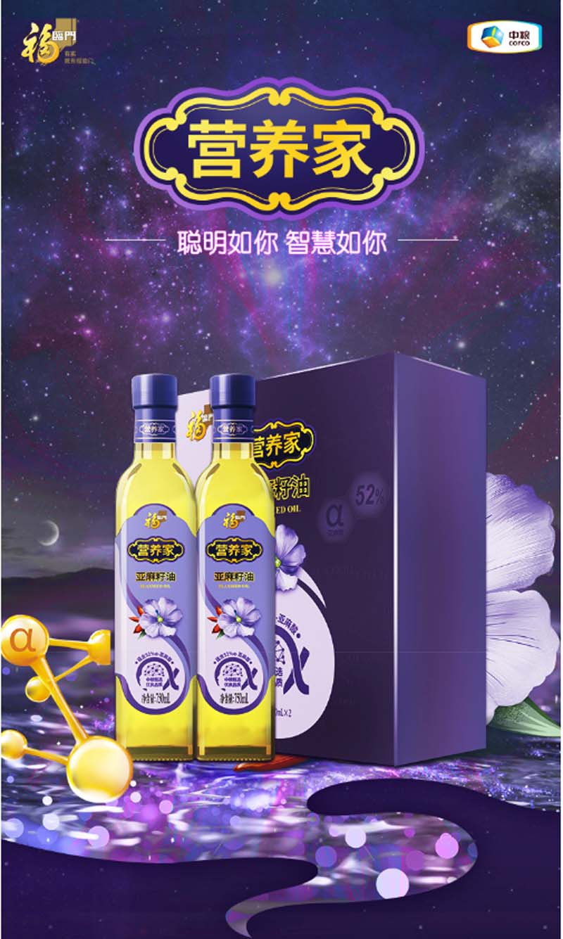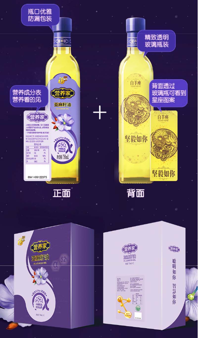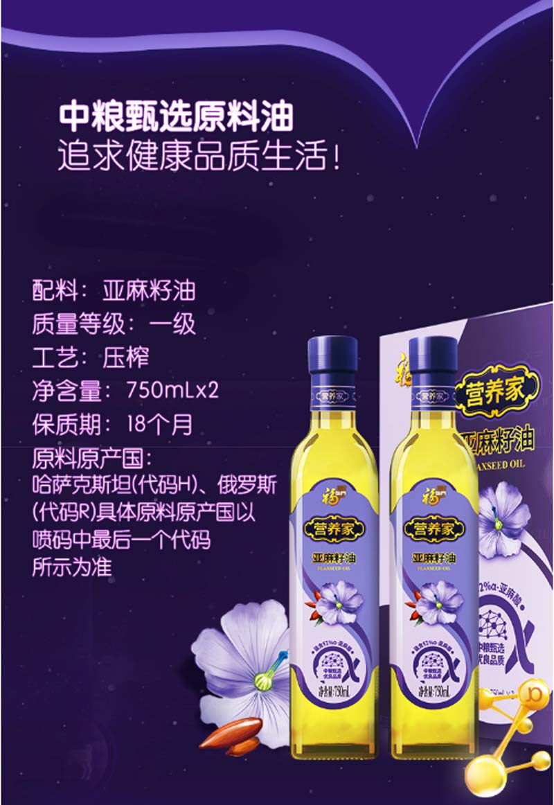 商品名称:福临门 食用油 营养家亚麻籽油(礼盒装)750ml*2(单位:盒)