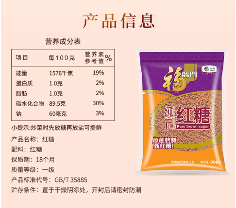 商品名称:福临门 纯正红糖 300g(单位:袋)