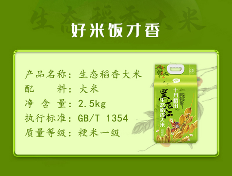 商品名称:十月稻田-生态稻香大米-2.5kg-单位:袋-起订量800袋