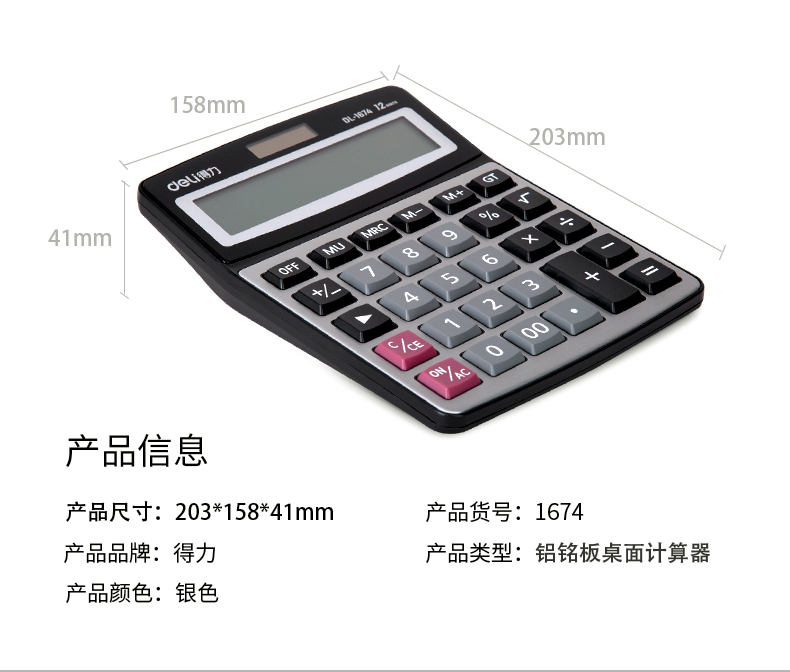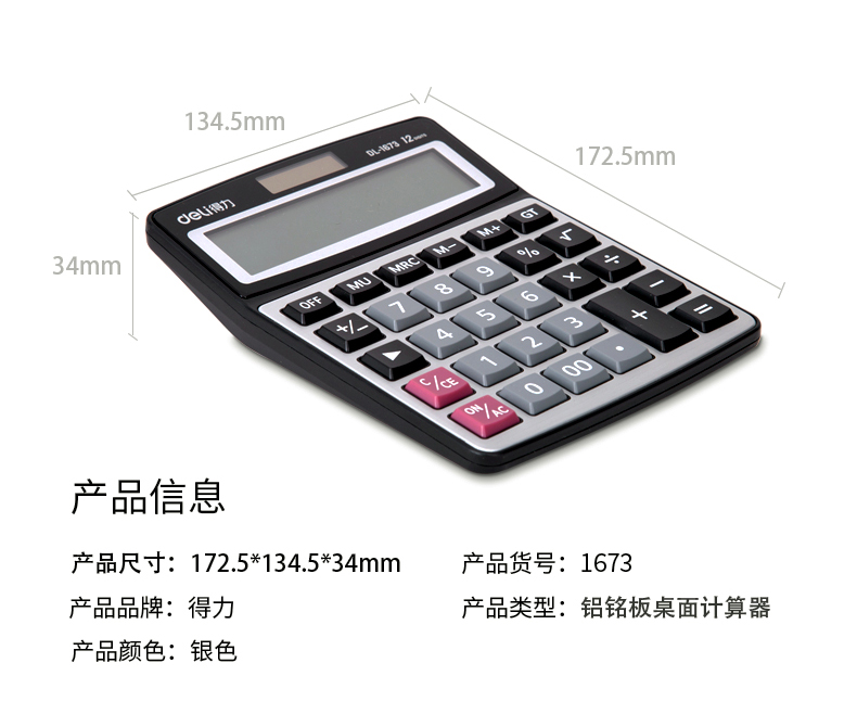 商品名称:得力1673桌面计算器(银)(单位:台)