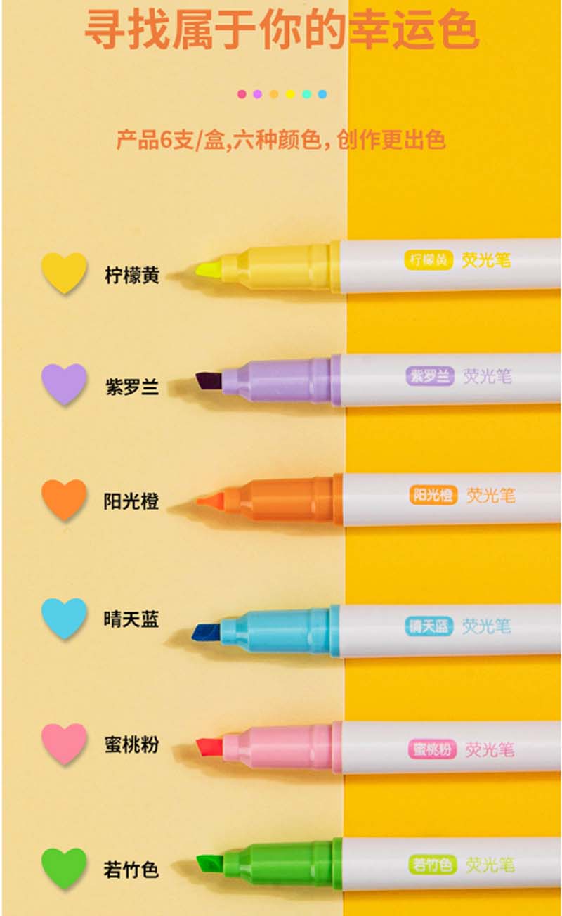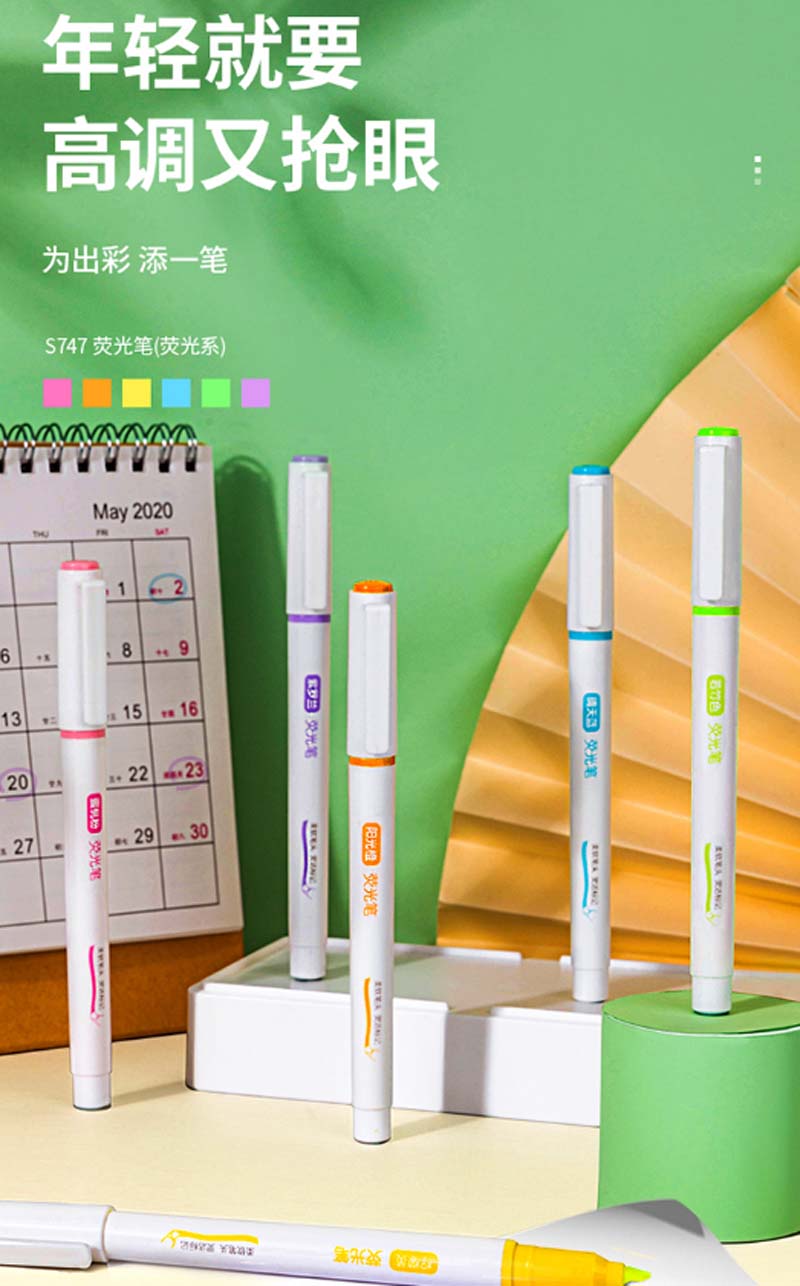 得力-S747-软头荧光笔(混)-(6支/盒)-单位:袋-起订量3袋