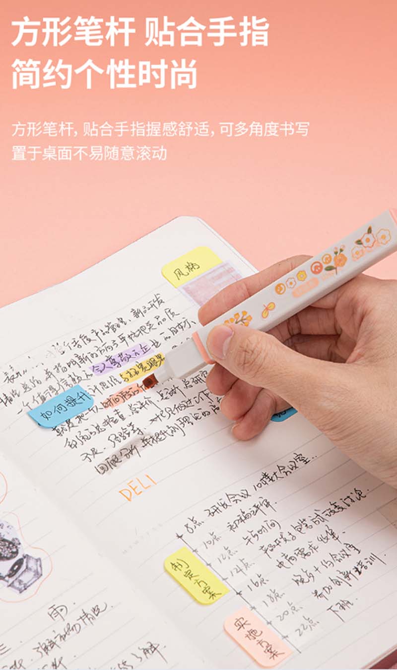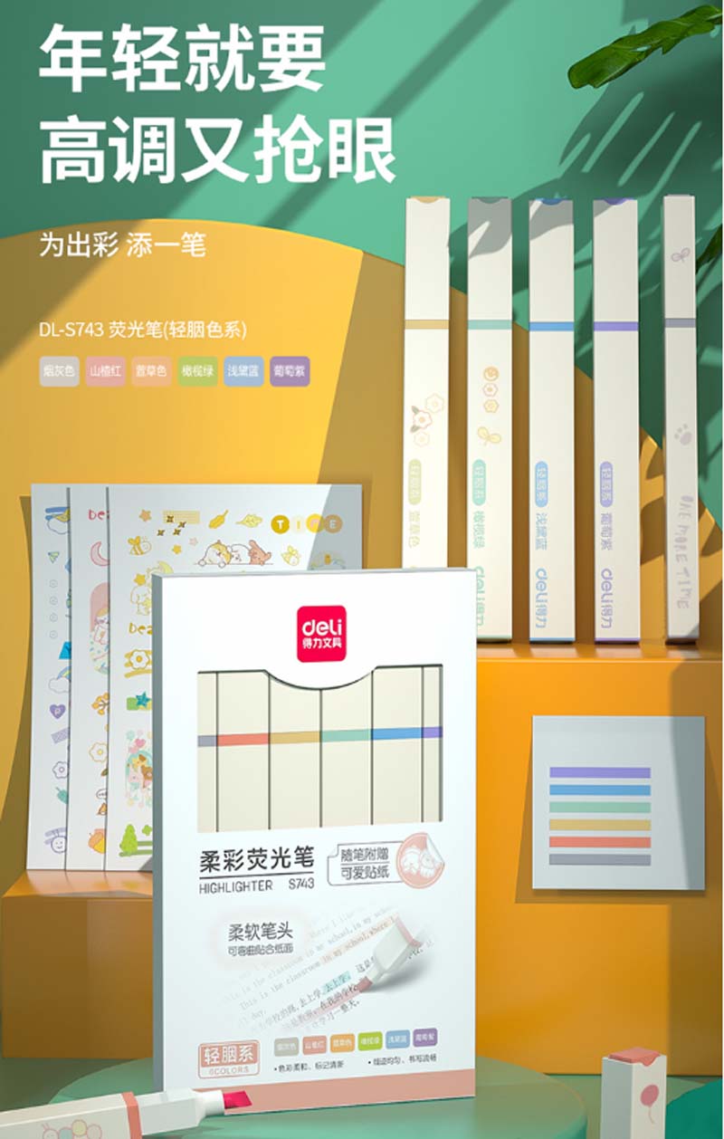 得力-S743-方杆荧光笔(混)-(6支/盒)-单位:盒-起订量2盒